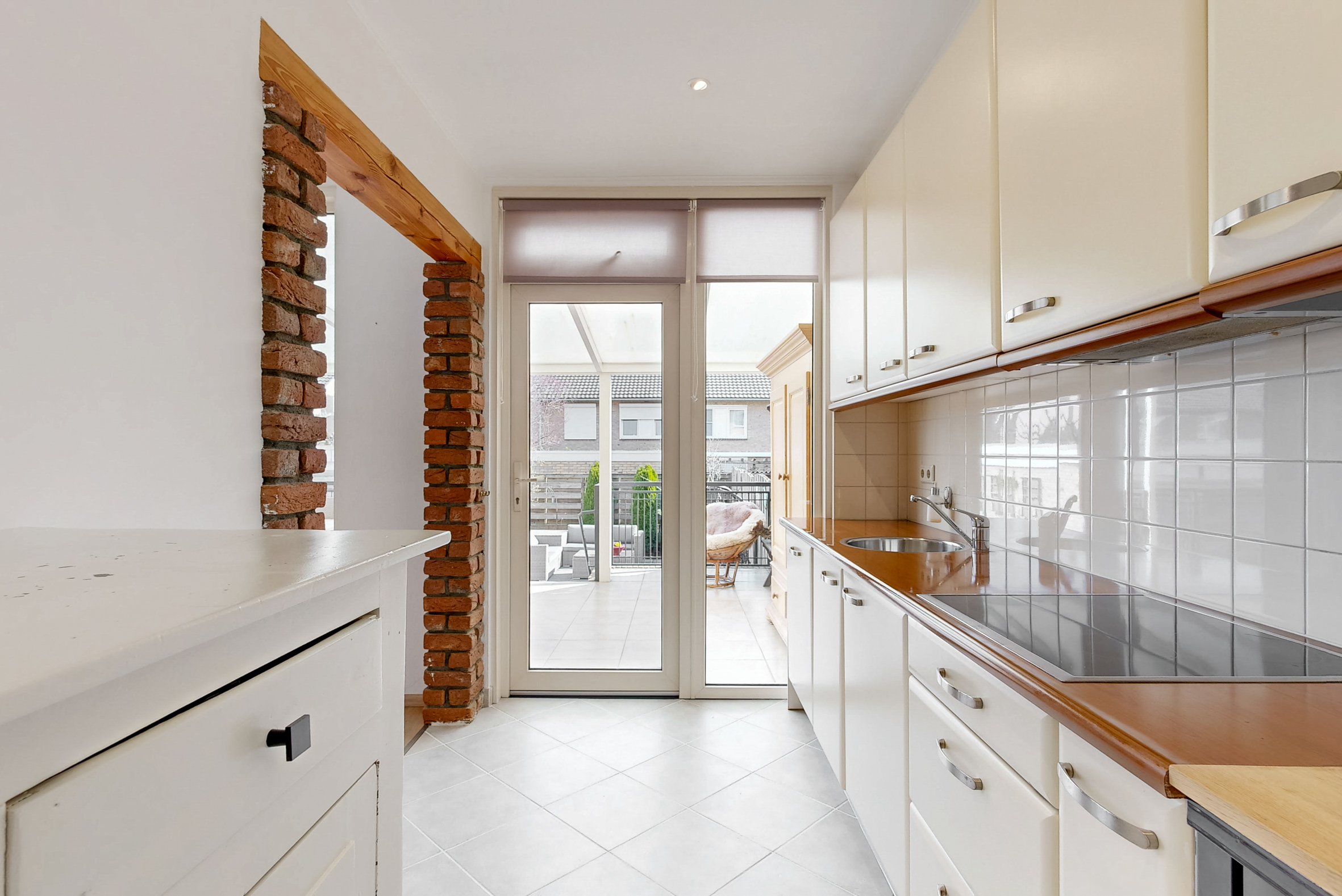 Vanuit de keuken heeft men tevens toegang tot het overdekte (betegeld) terras en de heerlijke tuin welke is gelegen op het zuid- oosten.