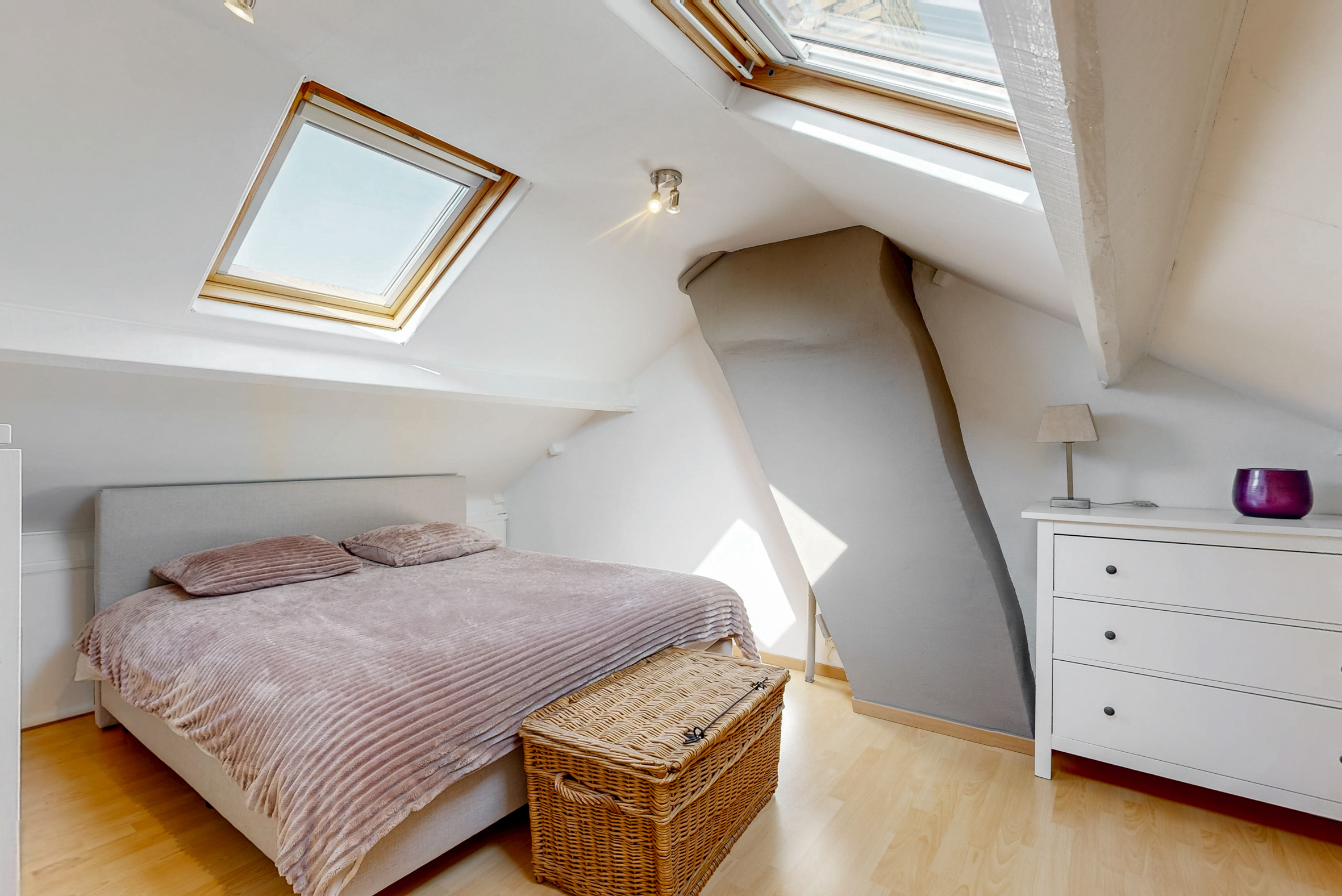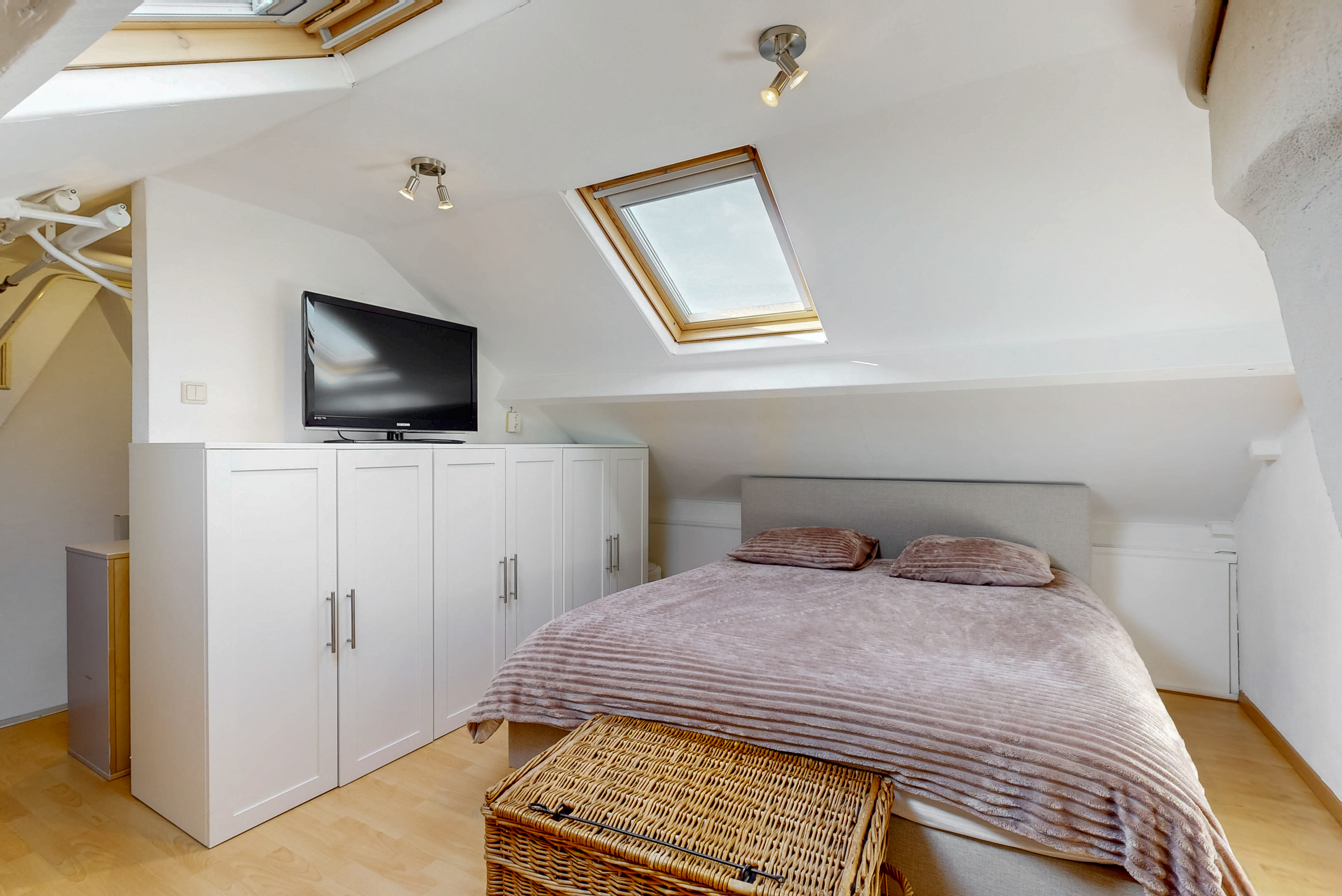 Te bereiken via een vaste trap; 4e slaap(zolder)kamer (ca. 12m2) welke tevens is voorzien van een moderne laminaatvloer en 2 dakramen.