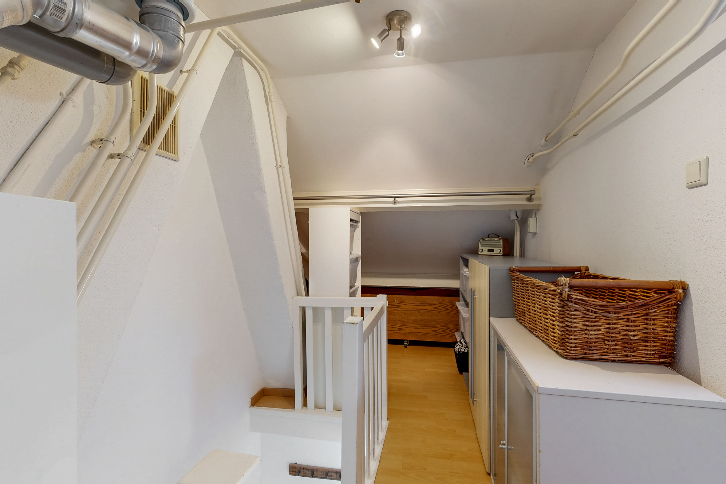 Tevens bevindt zich hier de overloop met de zolder-berging met de C.V.-opstelling (H.R.- Nefit combiketel, bj. 2013, eigendom).