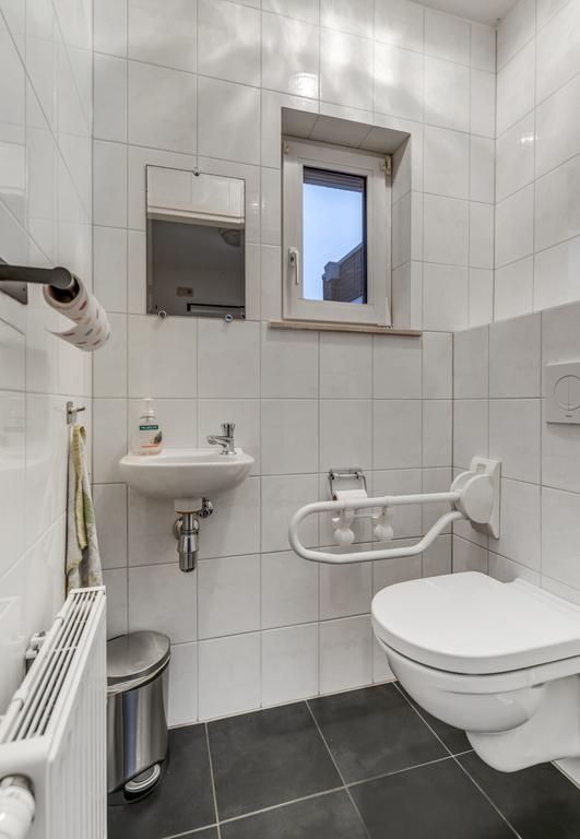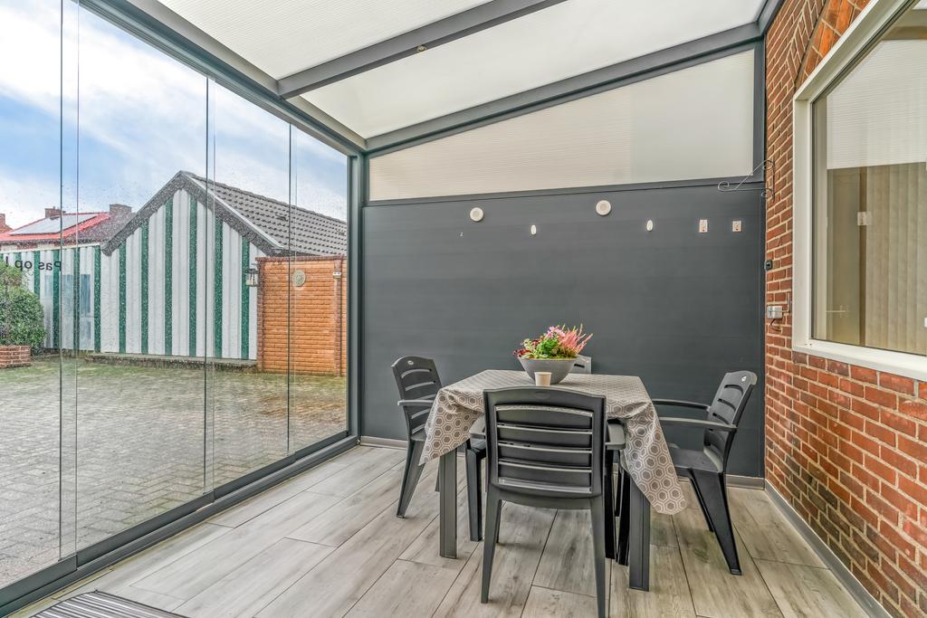 Portaal met toilet en toegang naar de serre, aanbouw met slaapkamer, moderne nette badkamer met inloopdouche, wandcloset en vaste wastafel, technische ruimte met C.V.-ketel (Vaillant H.R. ca. 2014 met elektrische Hybride warmtepomp ca. 2015, eigendom).