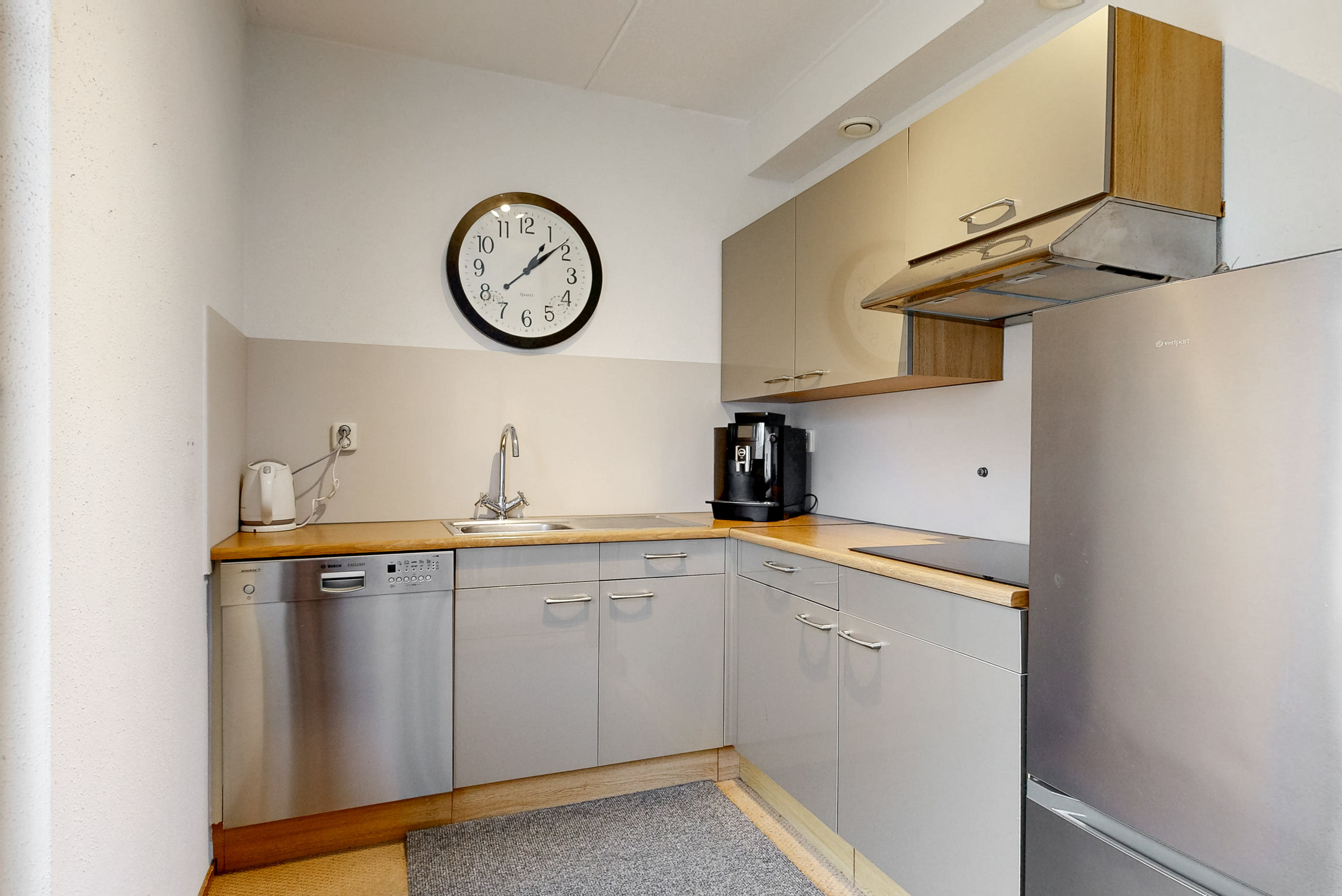 Entree met meterkast, toilet met fonteintje, Z- vormige speelse woonkamer (ca. 27m2) welke is voorzien van een airco (koelen en verwarmen), half open keuken met nette keukenopstelling voorzien van diverse apparatuur (koelkast, inductie kookplaat, afzuigkap, vaatwasser).