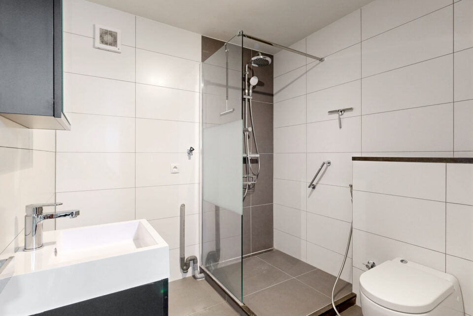 De verdieping is ingedeeld met drie slaapkamers en een moderne vernieuwde badkamer voorzien van een inloopdouche, vaste wastafel met badkamermeubel, modern wandcloset (sanibroyeur) en de wasmachine aansluiting.